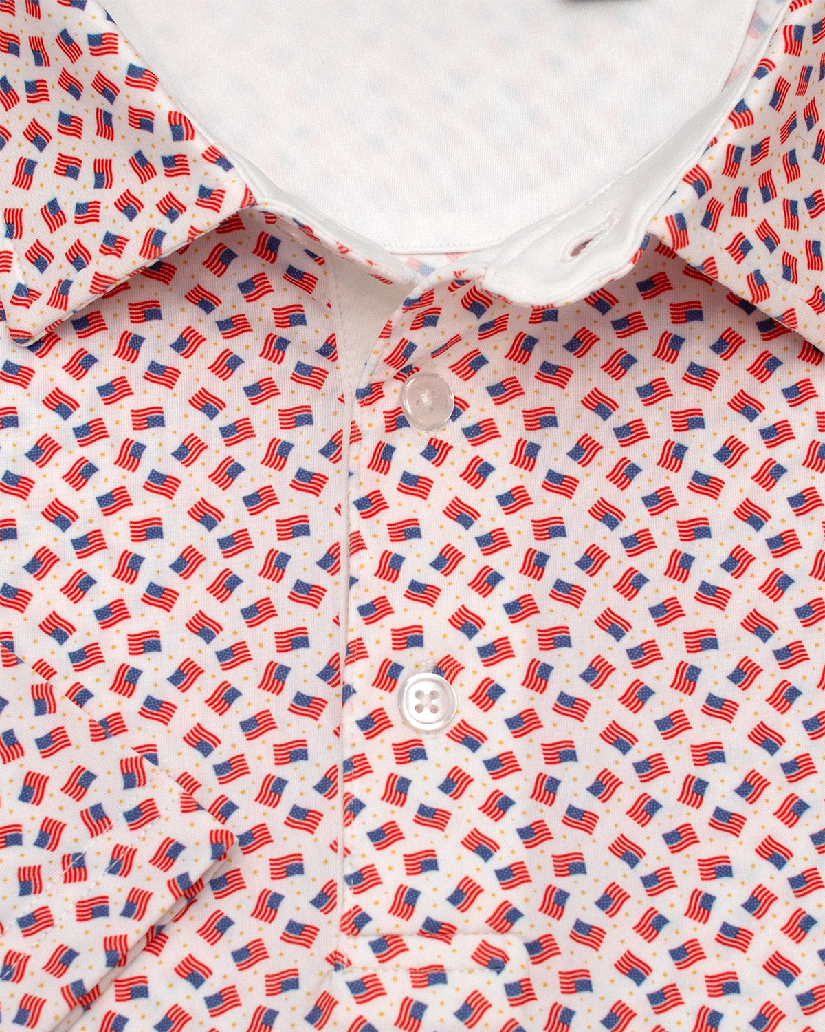 Crafted from a premium blend of 95% polyester and 5% spandex, it offers a lightweight, breathable fit with just the right amount of stretch for all-day comfort. Whether you're hitting the golf course or gearing up for the 4th of July, this polo combines performance and personality.
