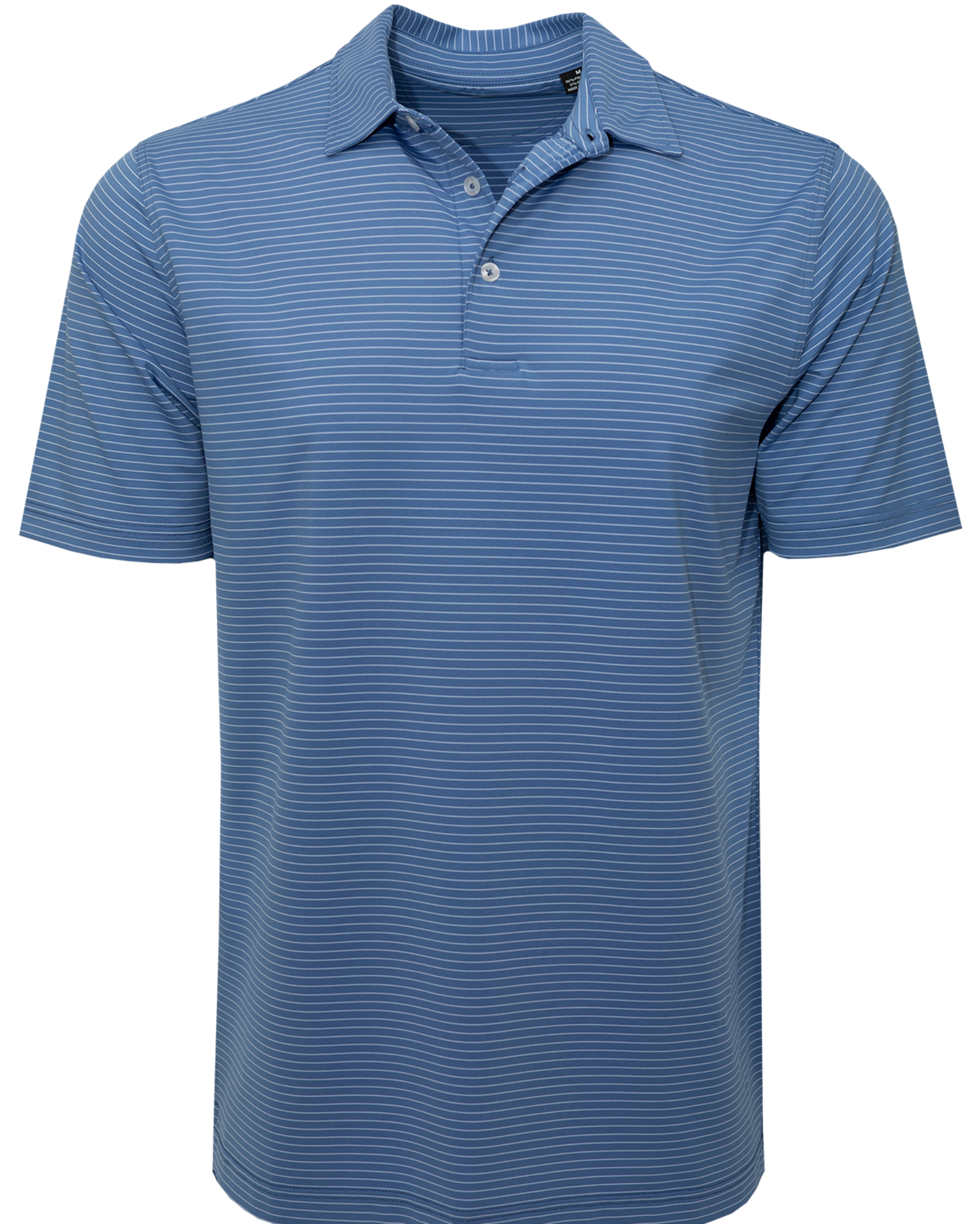 Elevate your wardrobe with the Key West Polo, where classic style meets modern performance. Featuring a sleek Baltic Blue base accented with fine white stripes, this polo is designed for ultimate versatility — from the golf course to weekend outings. Crafted from a premium 95% polyester / 5% spandex blend, it offers lightweight breathability, moisture-wicking performance, and four-way stretch for all-day comfort and mobility. Finished with a crisp collar and a three-button placket, the Key West Polo delivers a polished, athletic look without sacrificing function.