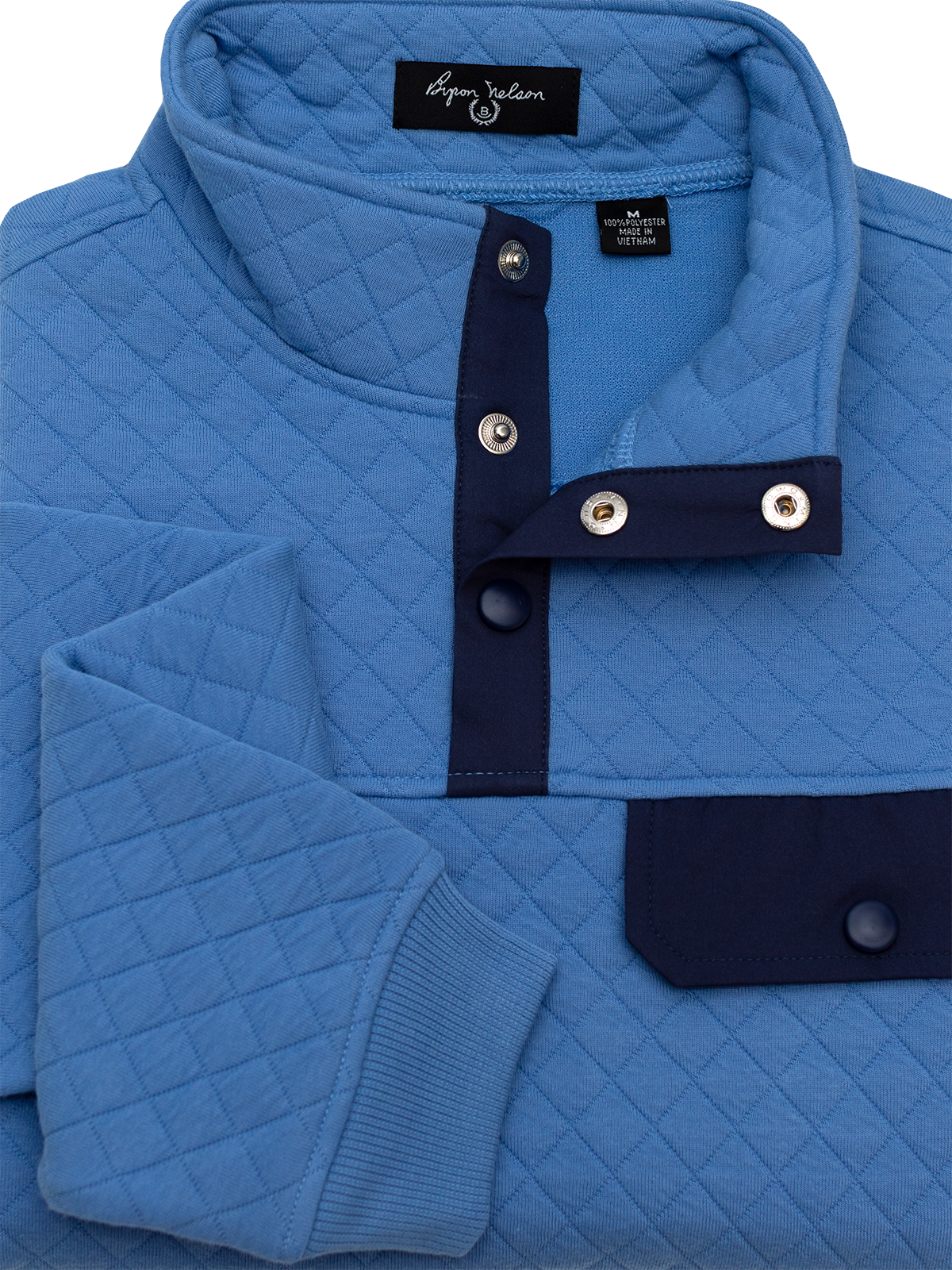 Layer up in timeless style with the Carolina Quilted Pullover. Designed with a diamond quilted pattern for added texture and warmth, this pullover blends classic looks with modern comfort. The soft cotton-polyester blend offers lightweight insulation, while the ribbed cuffs and hem provide a secure, comfortable fit. Contrasting navy accents on the snap placket and chest pocket add a refined, sporty touch, perfect for cool days on and off the course.
