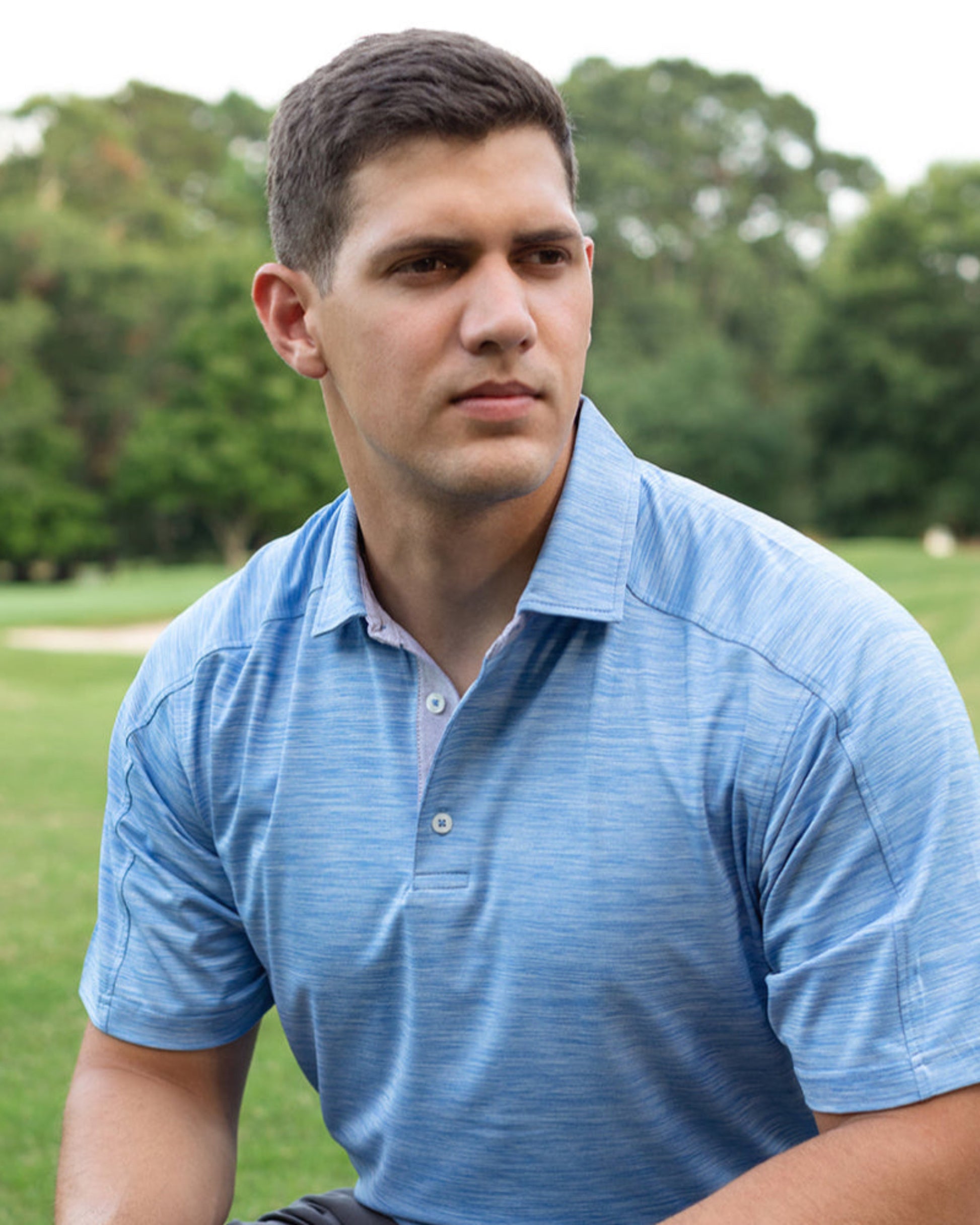Elevate your everyday look with the Performance Polo, where athletic design meets all-day wearability. Made with premium performance fabric and a subtle heathered finish, this polo is built for versatility and comfort.